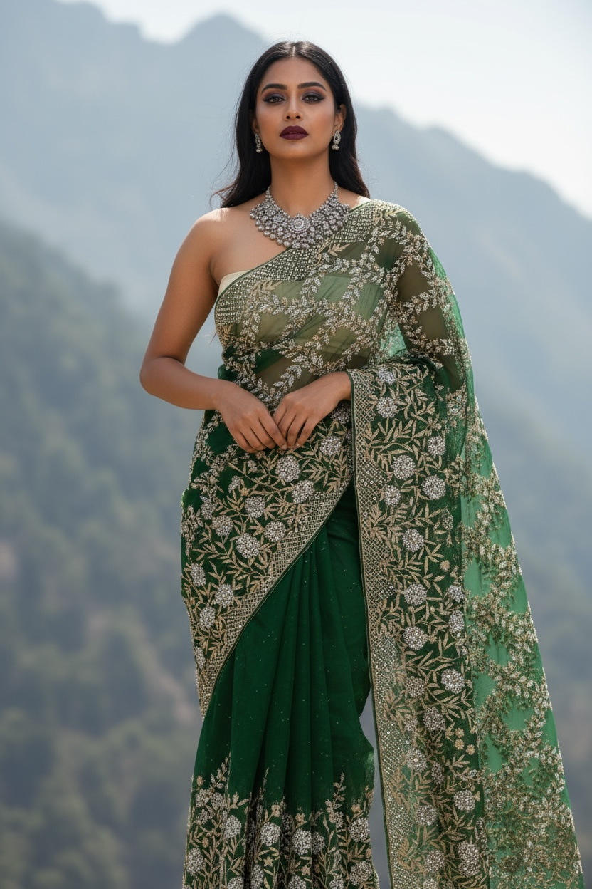 Emerald Green with Silver Embroidary