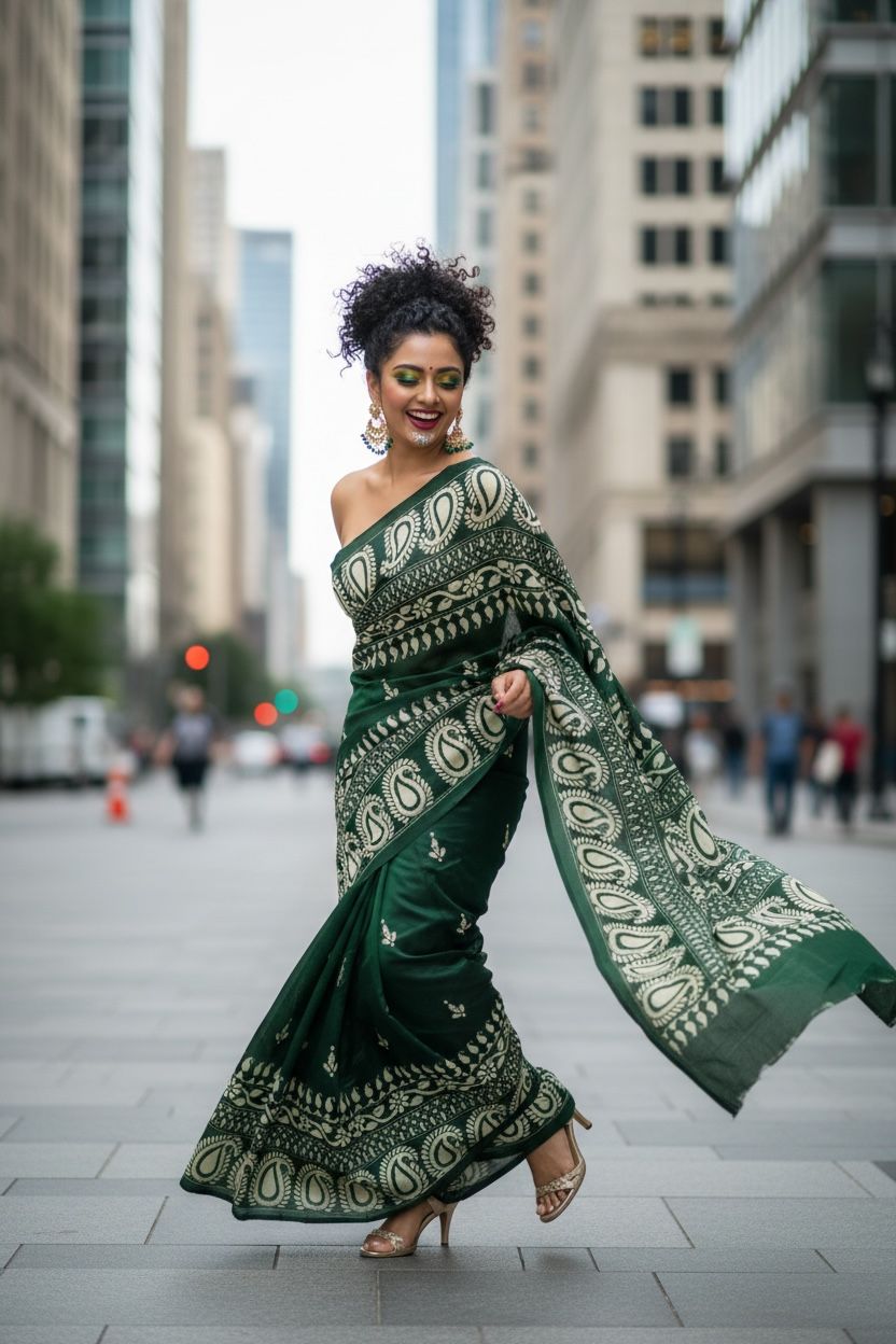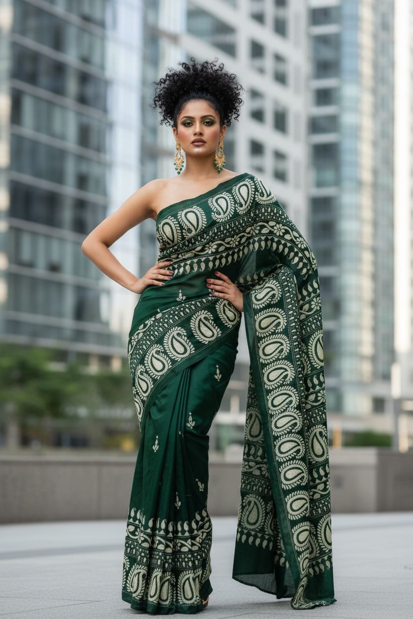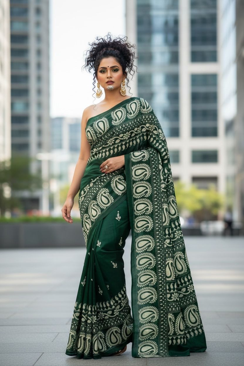 Emerald Calm, Paisley Grace (Pure Silk Saree)